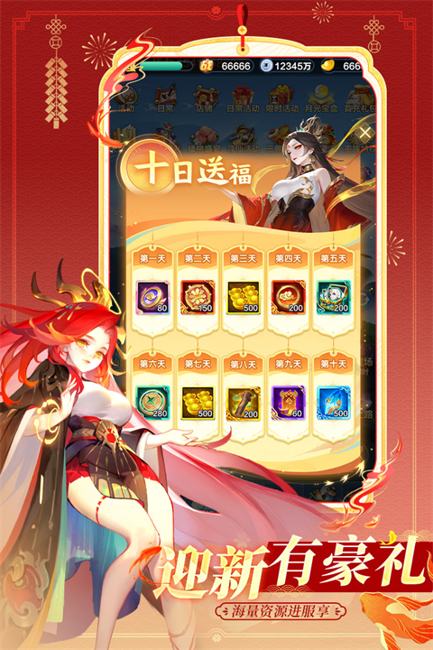 游戏玩法主打轻松养成与策略搭配,日常任务支持一键完成,减少重复操作。资源获取相对友好,玩家可以通过各种玩法产出大量元宝,直接购买心仪的角色或降低抽卡随机性。