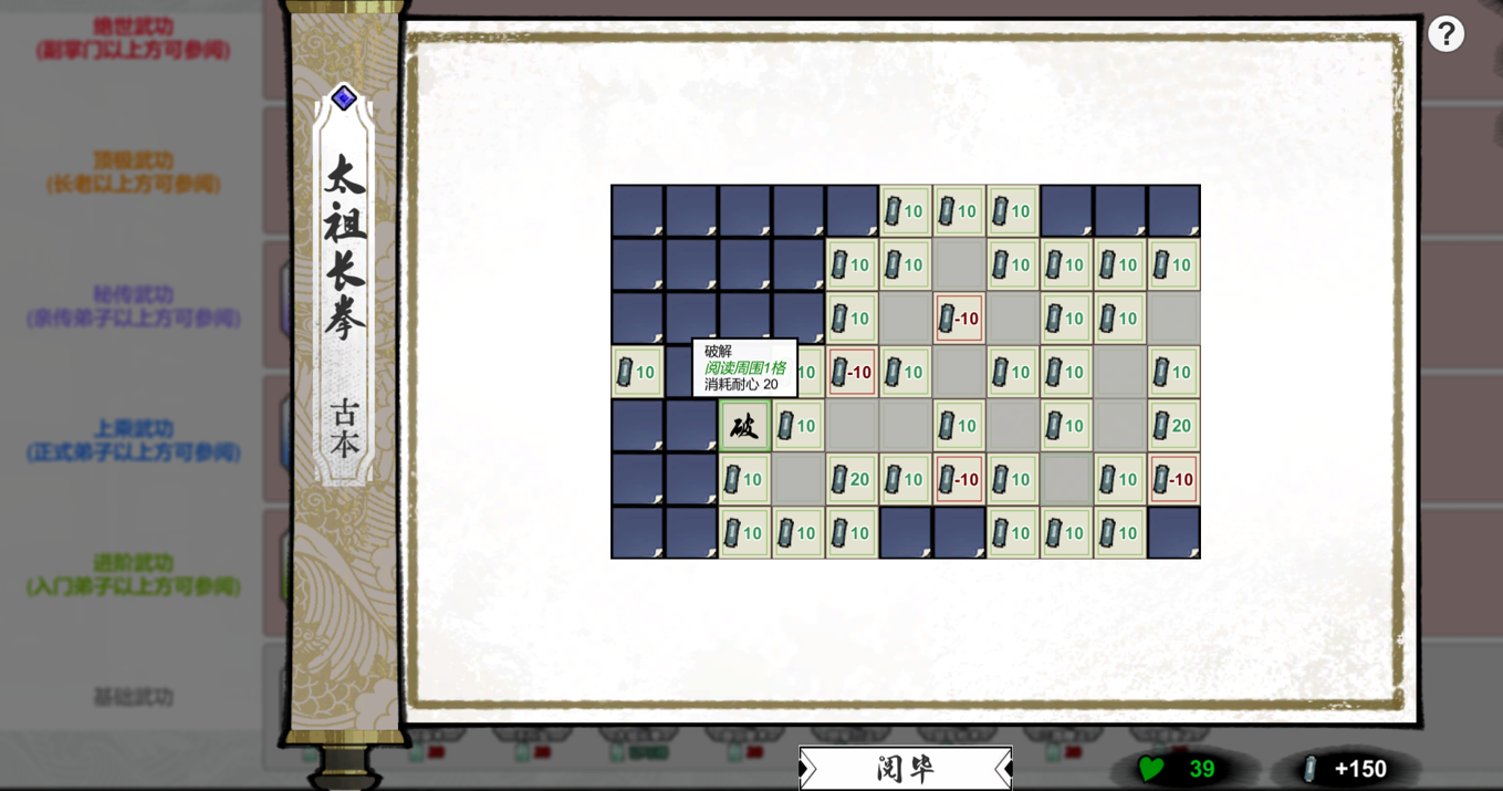 武学修炼:通过修炼、突破提升武学等级,解锁更强技能。注意武学搭配,形成独特战斗风格。