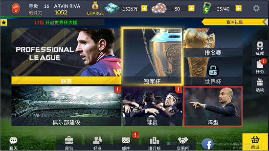 球员根据球场位置划分为锋线(进攻)、中场(组织)、后场(布置防守)、门将(守门)4类13个位置职业,每个球员在擅长位置会有更好的发挥,可以注意能力数值变化。