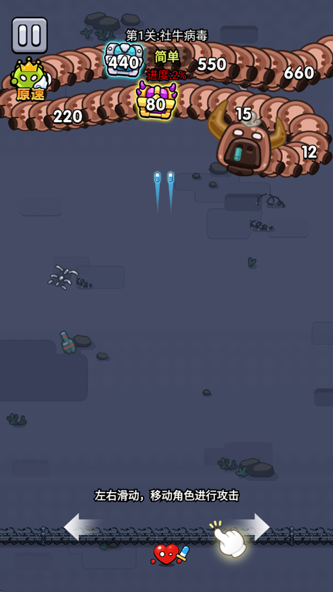 新手的话,建议先从基础关卡开始练习,熟悉BOSS的攻击模式和走位技巧。记得每次击败 BOSS 后都能获得强化的机会,这样可以让你变得更强大。如果病毒到达屏幕底部,就算闯关失败了哦!别忘了局外还可以强化武器,提升自己的战斗力。