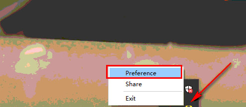 4、在右下角的任务菜单中右击鼠标打开此菜单,然后选择“preference”选项打开。