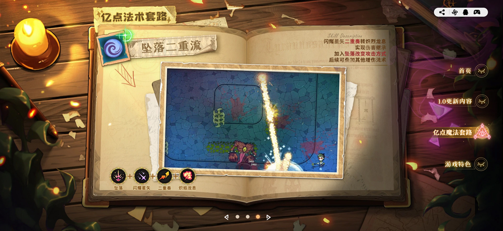 与魔王的战斗需要竭尽全力,发挥想象力与智慧,你可以通过合理组合共百种奇妙法术,碰撞出意想不到的惊人效果和绚丽魔法,召唤师、元素法师、近战法师?连制作人都想不到你的通关方式!