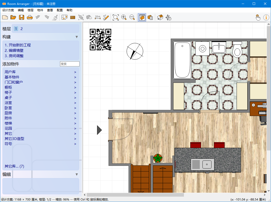 Room Arranger是一个简易轻巧的软件. 然而它却仍能让您能完成近乎一切想像中的设计. 在您了解基础操作后,将很容易的晋升至更高阶的程度