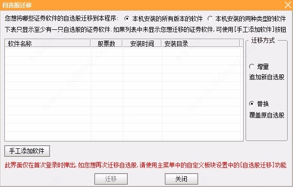 3、提示迁移股票功能,如果有股票就可以添加到软件