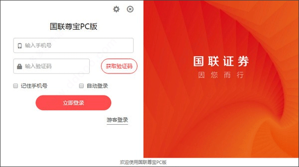 2、安装完成后即可运行使用国联尊宝电脑版软件,支持选择游客模式进入软件,护或者输入手机号和验证码进行登录