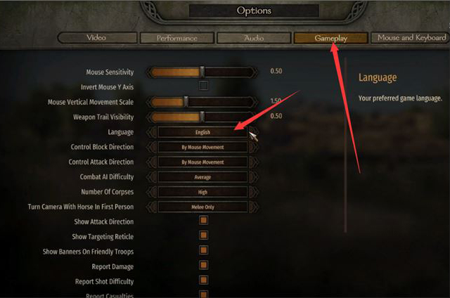 4、最上方选中Gameplay,找到Language下的简体中文,然后保存游戏;