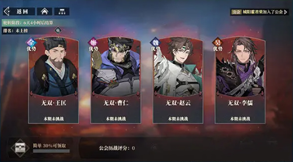 开启条件:通关主线6-4解锁“草莽英雄”,通关“草莽英雄”第13层解锁“甲子惊变”,通关“甲子惊变”第5层解锁“黄天荣耀”