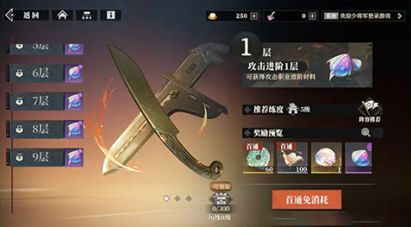 “武将进阶”副本,三个职业(攻击/防御/辅助)均有9层挑战,通关后可扫荡获得1-9阶的武将进阶材料,是武将进阶材料的主要获取来源,少将军不要错过哦