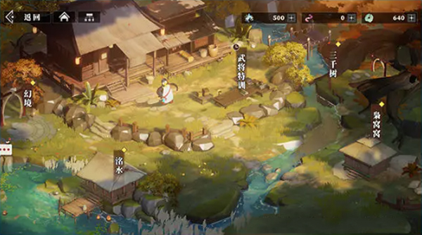 三山里内可开启洺水、幻境、武将特训、三千树、枭窝窝等功能,洺水内钓鱼可提升主厅等级,也可将钓得的鱼在枭窝窝中与好友共享美味,三千树可解锁武将的番外故事,武将特训可获得心仪武将的魂石。是一个集休闲、趣味于一体的轻度玩法。