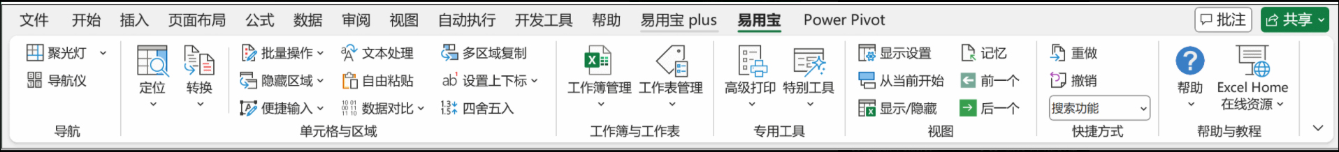 2、在Excel 2007/2010/2013中,Excel易用宝会在功能区中新建选项卡,