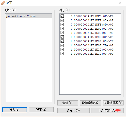 10、点击【修补文件(P)】按钮,保存已打补丁程序文件至临时目录中;