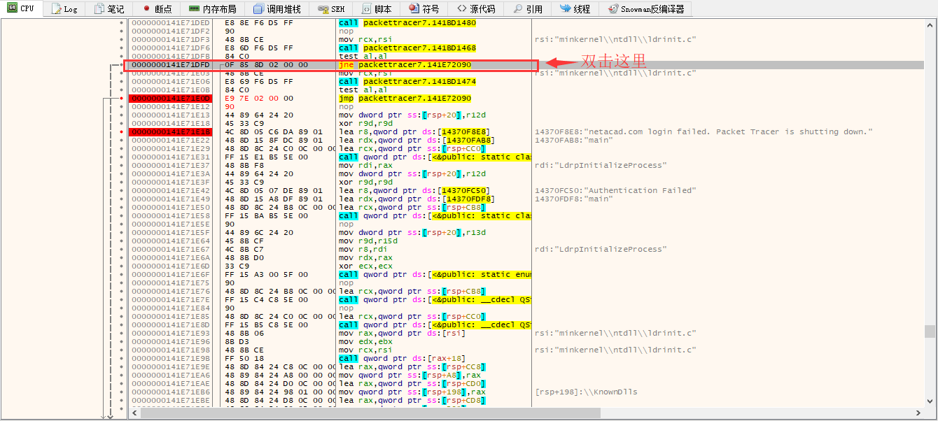 方法:使用 【x64dbg】 去掉 PacketTracer7 的【登陆限制】,达到【免登录】即可使用软件的目的。