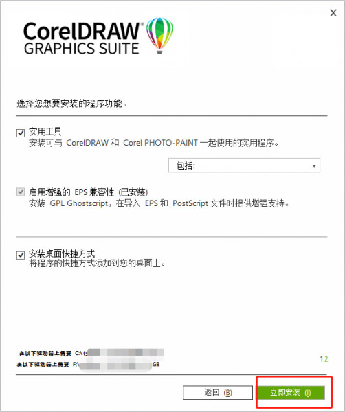 3、选择相应的勾选相应的程序功能,点击立即安装。