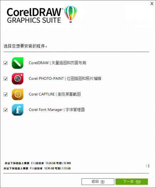 2、然后根据提示进行安装,安装过程需要勾选几个相关的应用程序:矢量插图在页面布局,位图插图和照片编辑,高级屏幕截图字体管理器,一般情况下选择全部勾选;