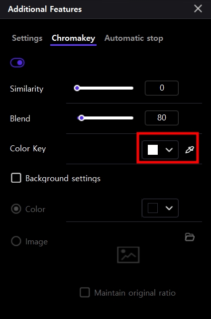 5、选择"背景设置"并配置要插入到色度键区的颜色或图像。