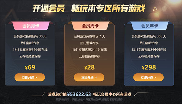 会员服务挺吸引人的,特别是月卡和年卡,能玩很多天甚至一年的游戏,还能享受专属客服和云存档服务。不过价格有点小贵,但相比买一堆游戏可能还是划算的。盒子的操作也挺简单的,一键登录就能马上玩游戏,这点真的很方便。