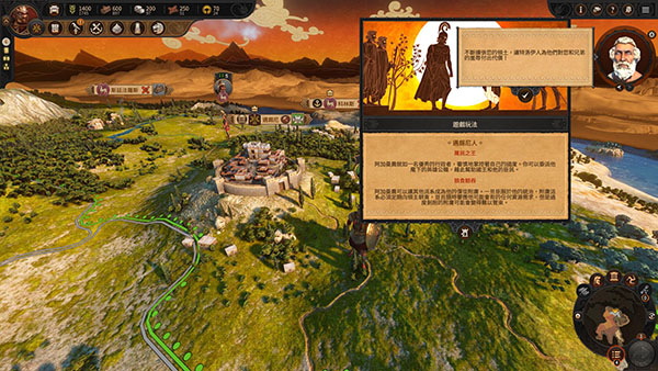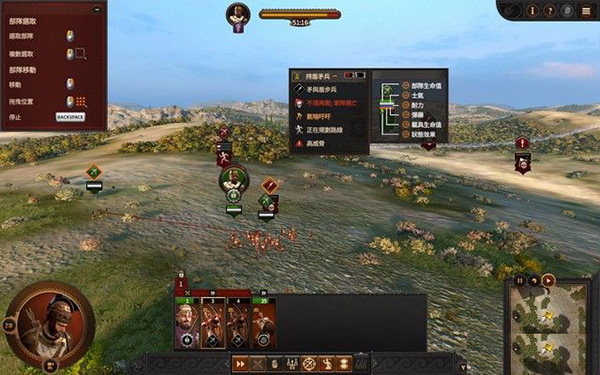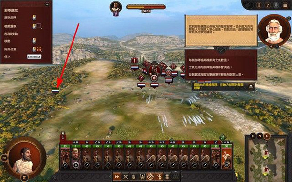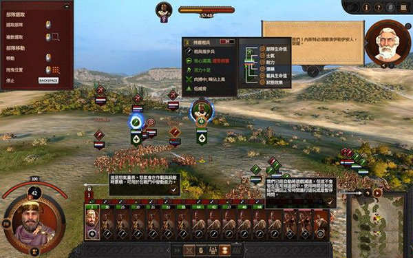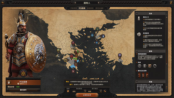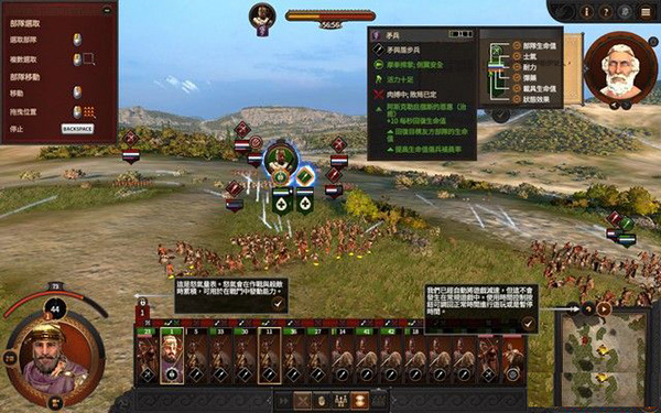9、右上角的图标会为玩家介绍游戏的玩法和操作,左上角可以看到人物的各项属性,以上就是全面战争特洛伊中文版的全部安装教程,祝大家游戏愉快。