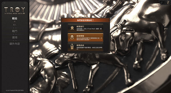 4、进入主菜单可以看到三种模式,给我引导模式适合没有玩过全面战争系列的玩家;