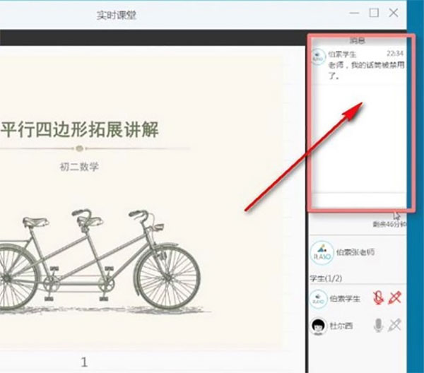 3、进入软件,在主页面的左边可以选择实时课堂,以后可以查看每一位老师的授课方式以及正在讲解的题目,可以语音提问老师。