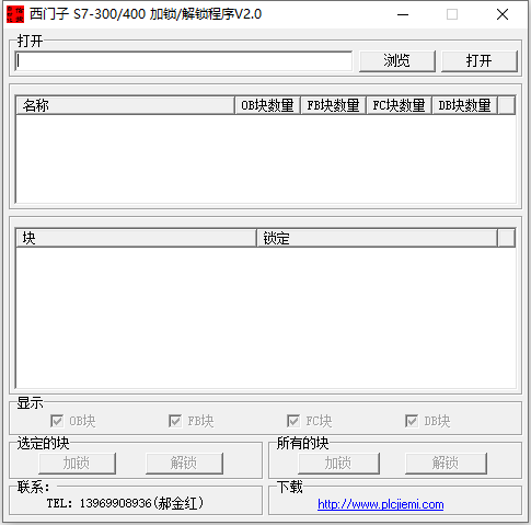 S7程序解密,用于加锁解锁S7 300/400的OB、FB、FC、DB块。当你有解密软件解密后将程序上传到电脑后,很多程序块是加了密的,只能显示一个个小锁,有此软件可轻而易举打开。使用前请备份原Project以防不测。