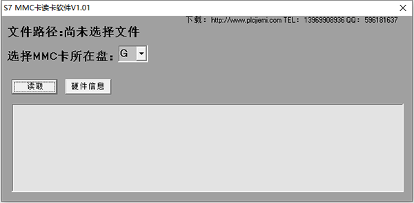 请先打开《MMC读卡软件》,破解时先用普通MMC读卡器(电脑城、手机店有售,10元左右或您的电脑本身就有),读出S7-300或400的MMC卡。在软件窗口选择对应然的移动磁盘,按一下《读取》按钮,这时在弹出的‘建立文件’对话框中输入你要建立的文件名,点击《确定》按钮,读取开始了……待读取完成,程序密码就会出现,看下图。有了密码这样你就可以在线把程序下下来。切记!!如果出现《格式化》对话提示请及时退出, 退出后在重新载入。否则出现数据或程序丢失概不负责。附赠一个300-400卡写入软件(写卡软件未加密直接解压打开就是),当你不小心将卡格式化,一般情况就报废了,因为数据格式不同,有此软件可写入映像数据,可在PLC重新下载程序使用。