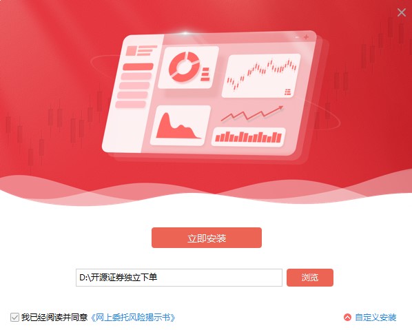 2、勾选“网上委托风险揭示书”,并指定安装路径开始安装!