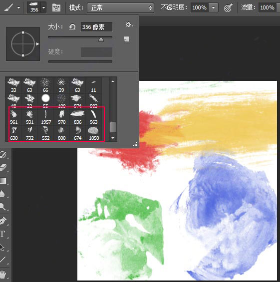 4、找到最后的画笔就是ps油漆笔刷,有多种类别,用户可以调整大小直接放在图片上使用。