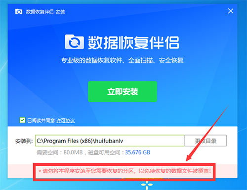 安装注意事项:切记不要把软件安装或者下载在需要恢复的硬盘内,软件默认是安装在C盘的,所以如果要恢复的是C盘,软件不要装在C盘内。