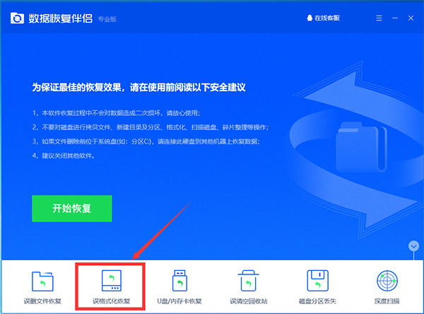 Step2:安装完成,运行软件。选择“误格式化恢复”选项;