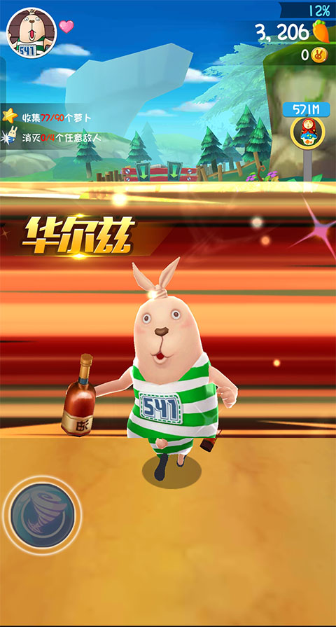在躲避警察追捕的同时,玩家需要沿途收集胡萝卜、金币和糕点等道具。收集元素不仅增加了闯关的趣味性,也为重复挑战关卡提供了动力。