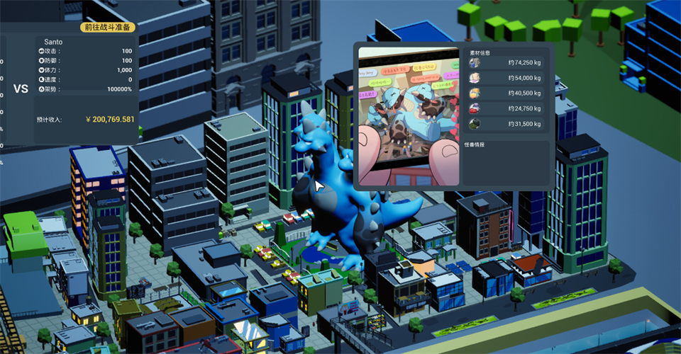 当面对更危险的怪兽时,您可出动机甲迎战,在城市中展开震撼对决。游戏提供20处可破坏战斗场景,还原激战场面。战斗结束后,仍需由您进行战场清理与怪兽善后处理,形成“战-拆-营”完整闭环。