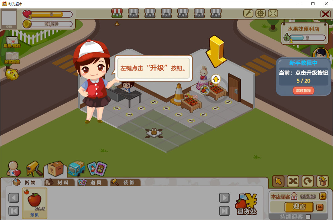 8、恭喜!您已经掌握了经营超市的诀窍,请点击“迎客”继续营业吧。