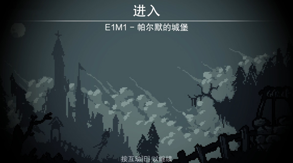 1、打开术士计划2正式版,点击屏幕任意位置开始,按E进入游戏第一章;