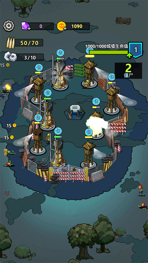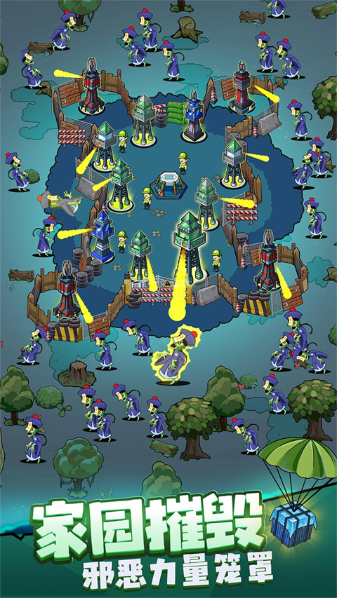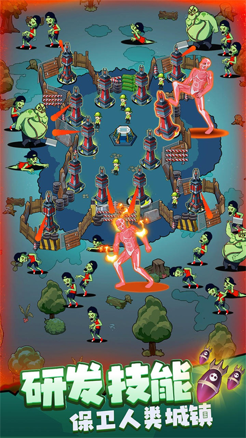 3、抵御僵尸入侵:整个城市被邪恶的僵尸包围入侵,为了生存,您需要做的是不断建造和放置防御塔击杀所有僵尸。