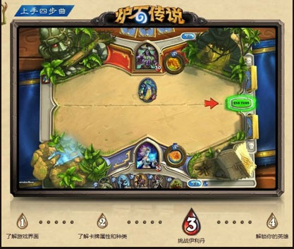 1、练习模式:与代表不同职业的电脑对手进行对战,可以解锁新的英雄和基本级卡牌。