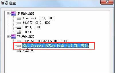 2、打开winhex,按F9选择HD1物理磁盘。