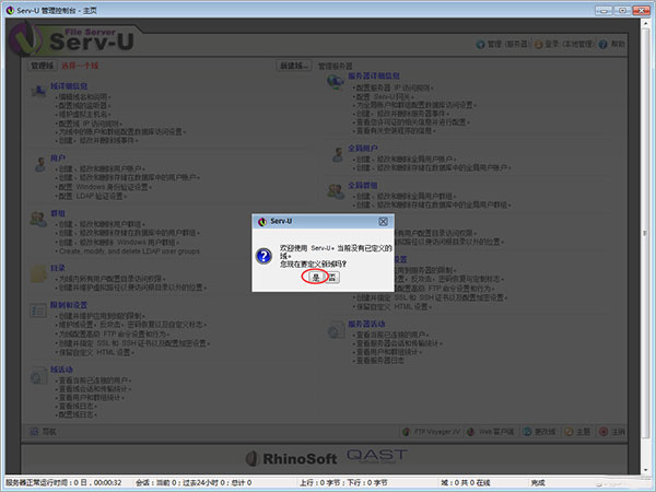 初次进入软件,询问是否需要创建一个域,点击是;