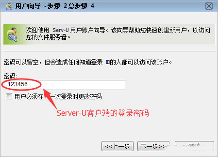 下面开始创建Server-U的客户端帐号,密码;