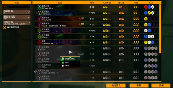 4、在快速加入这里需要说明的是,不建议新人开始就去挑战4.5级房间,只建议去3级以下的房间开始游戏(这样才不至于还没开始感受到游戏的乐趣的时候就已经被劝退)。这里注意的是,当你在晋升机器上接受任务的时候,任务需要完成的地图会高亮凸显出来,这样你就可以直接看到并加入游戏。