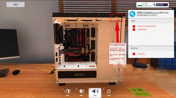 游戏里还有一些实用的小工具,比如风扇控制应用和感温摄像头,能实时监控电脑的温度和功耗。对于新手来说,这种手把手教学的模式特别友好,每次安装硬件的时候都会有提示,一点都不会让人觉得枯燥。