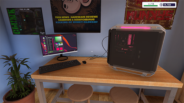 最让我喜欢的是自由装机模式,在这里可以完全发挥创意。你可以给电脑加上RGB灯光、喷漆和各种酷炫贴纸,把工作间布置成自己喜欢的样子。安装水冷系统、超频CPU或GPU,用3DMark测试性能,整个过程既专业又有趣。