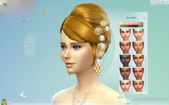 现在进入头部编辑模式,在右侧出现一排按钮,分别是脸部与肤色、发型、胡须、帽子、附件(耳环、耳钉、眼镜等)、化妆(眼睛、眼线等),可以简单的从右侧的列表中选择满意的样式。