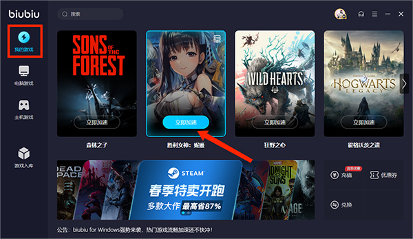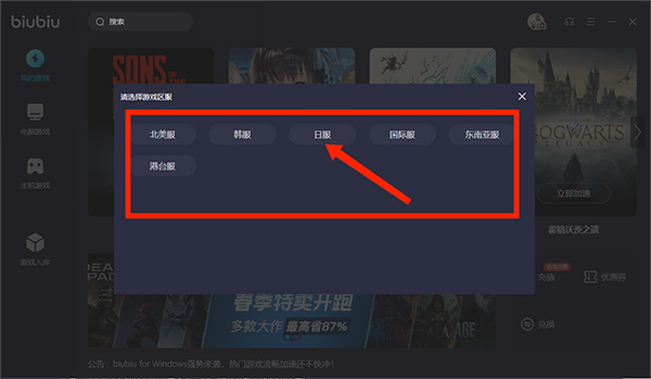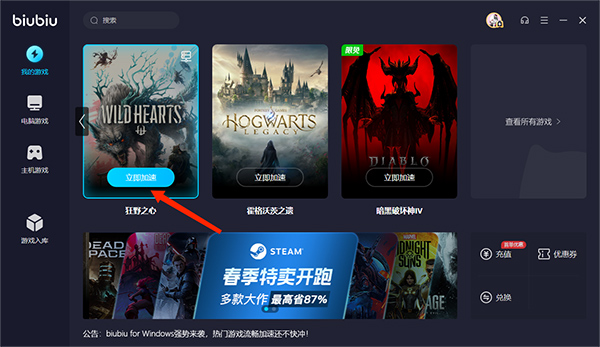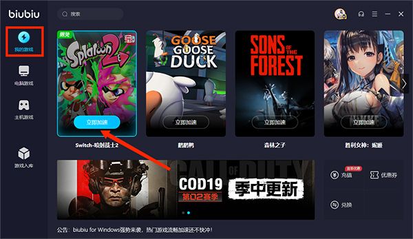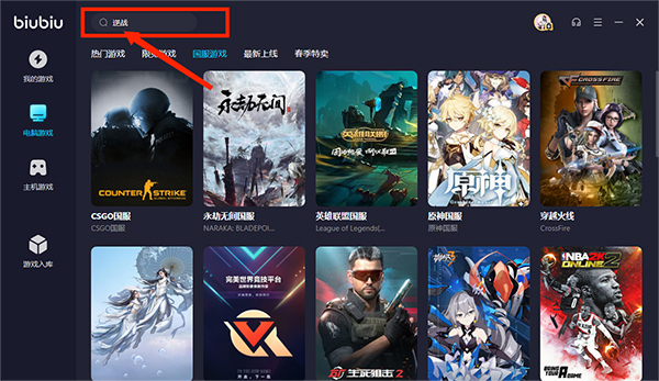 biubiu加速器pc版怎么搜索游戏?