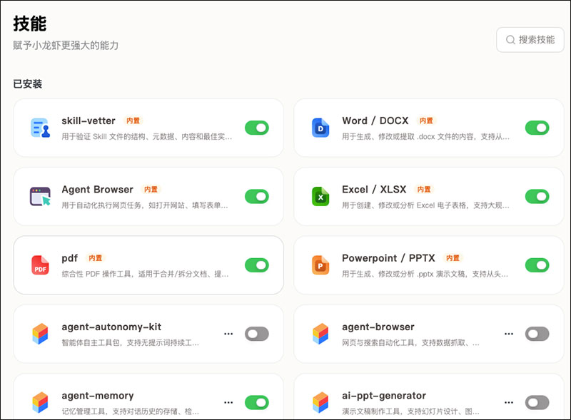 1、技能是自动触发的:只要你的需求匹配,龙虾会自动拉起对应的技能,你完全不用管“用哪个技能”这件事