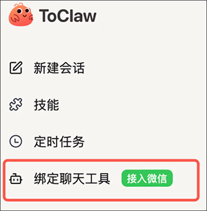 当前仅支持微信绑定,后续会支持更多聊天工具接入