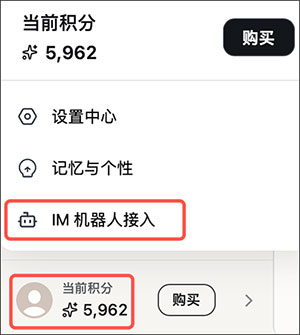 2、方法二:PC端左下角点击头像-IM机器人接入-扫码绑定
