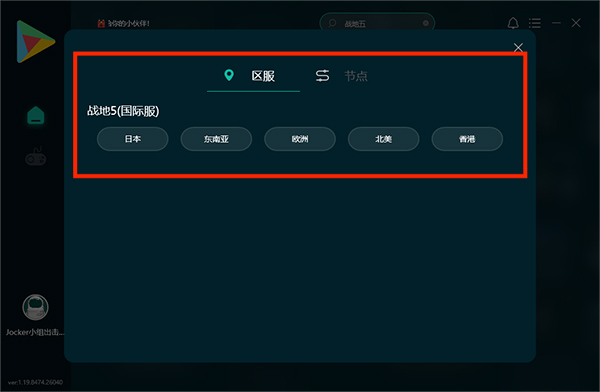 5、用户可选择相应的【区服】和【节点】进行加速,