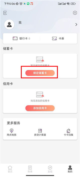 2、在这里点击【绑定储蓄卡】。
