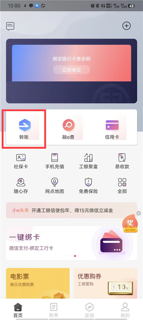 转账操作简单,几步就能完成;绑卡流程也特别直观,跟着提示一步步来就行。功能方面更是应有尽有,比如话费充值、电影票优惠、交通罚款缴纳等等,特别是微转账功能很实用,微信转账20万限制也能突破,这个设计真的很用心。