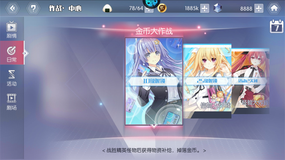 和剧情副本不同,日常副本的战斗更为丰富,有限时作战等新奇玩法。